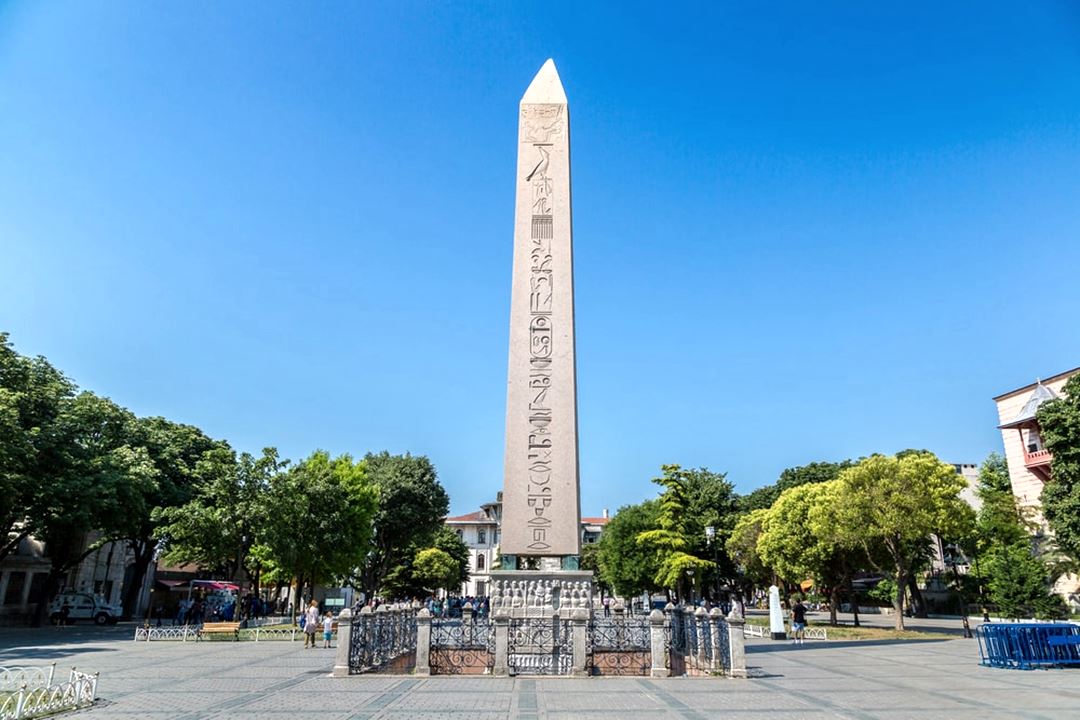 Eski Mısır’dan çıkarılacak dünyanın çeşitli kentlerine dikilitaşlar götürüldüğü olmuş. Istanbul’daki dikilitaş ilk olarak mö 1547 yıllarında Firavun 3. Tutmosis adına Yunanlıların Helipolis adını verdiği Annu kentinde dikilmiş. Üzerinde hiyeroglif yazısı ile Tutmosis’in zaferleri yazılmış. Taş ilk olarak Bizans Imparatoru Constantinus’un dikkatini çekmiş ve Mısırlılardan taşın kendisine gönderilmesini istemiş. Dikilitaş 390 yıllarında Bizans İmparatoru Theodosius’un emriyle Hipodroma dikilmiş. Kaidedeki kabartmalar üzerinde 1. Theodosius oğulları karsı Arkedios Honorios ile imparator 2. Valantinianos görülür. Ayrıca hipodrom sahneleri ve anıtın dikilişini gösteren tasvirler de vardır.